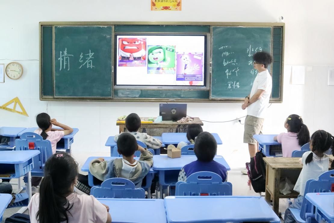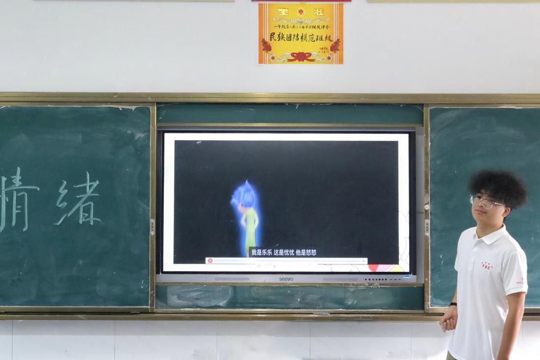 此次课程以教授“情绪”为中心,主要聚焦心理健康。课程初始,主讲人播放截取自《情绪特工队》中的片段,把抽象情绪转变为动画形象。在观看完视频之后,学生们在老师的指引下回忆动画内容和人物,并对情绪的概念、种类等有了初步理解。随后,主讲人讲授每个情绪产生的原因,并提问学生们负面情绪可能造成的影响和排解的方法。主讲人让学生们用生活场景举例,以开火车的形式逐一给出自己的答案。