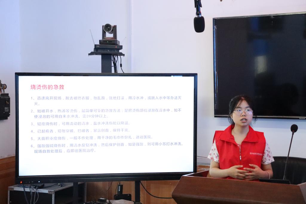 副队长王治力对暑期社会实践成员进行三下乡安全培训会议,包括急救知识,疫情防控要求,蚊虫叮咬防治措施、中暑应对措施。