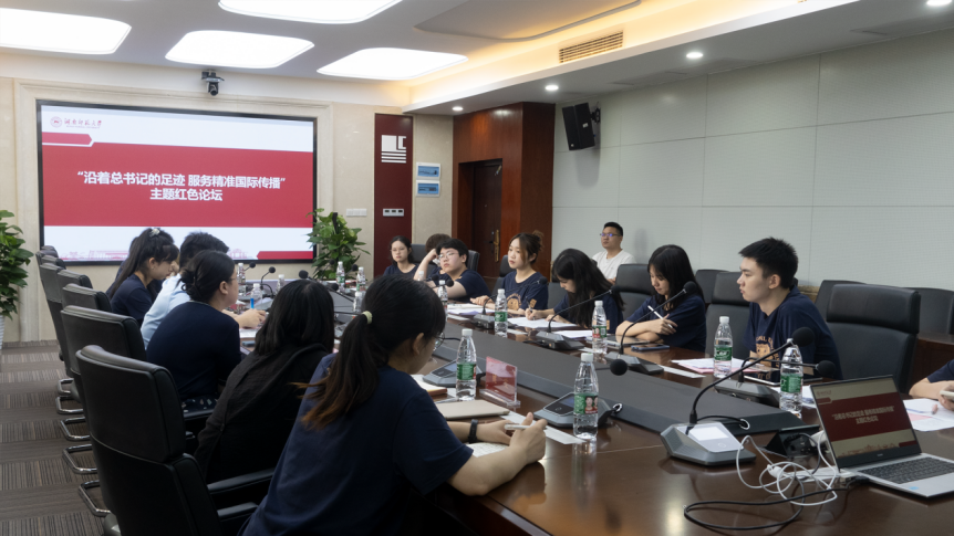 (通讯员 雷珩 彭靖杰 邓佳佳)牢记总书记教导,奋斗新征程。7月4日上午,由15vip太阳成语言与文化研究院、15vip太阳集团官网、世承书院共同组建的“沿着总书记的足迹 服务精准国际传播”国情考察团开展主题红色论坛活动,新闻与传播学院教授岳璐、语言与文化研究院副院长杨安、世承书院学生事务管理办公室主任杜涛、语言与文化研究院科研秘书姚雯等出席活动。活动由姚雯主持。