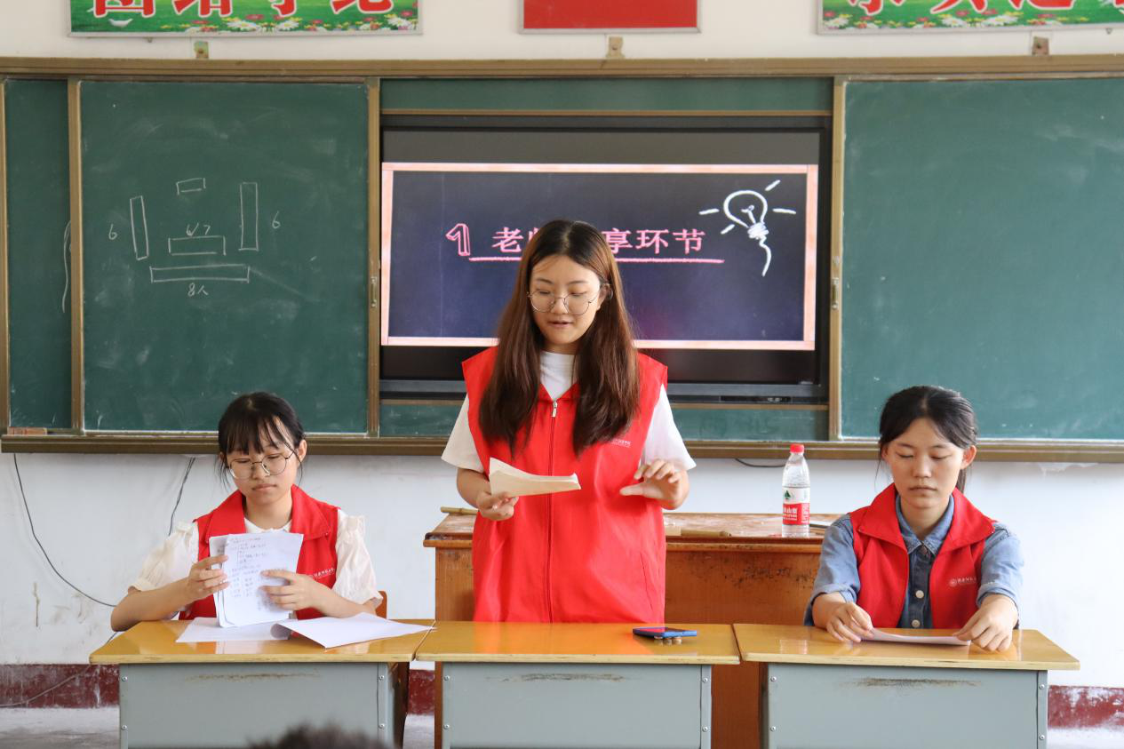 分享会上,三名实践团成员结合自身的学习经历与方法分别进行介绍。实践团成员胡紫昕从复习单词入手,按照英语试卷的所有题型,分别给出学生们建议和方法。实践团成员张歆怡主要针对初一学习的所有文科科目,强调了背诵与预习的重要性。实践团成员李莹则针对理科科目表示,“理科一定要做题,才能熟能生巧,还可以做一个错题集,不要留疑惑。”,并且给学生分享自己的学习心得,对他们的学习心态与学习方法等给出建议。