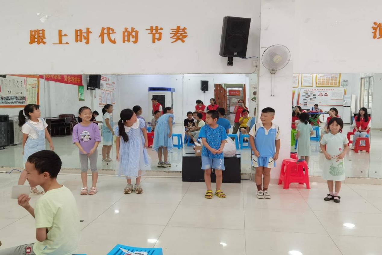 特色节目环节,孩子们踊跃参与,积极表现,演唱《孤勇者》等歌曲,表演《万疆》等舞蹈,还有孩子把武术带上了舞台。舞台下的孩子们也跟着唱歌舞蹈,拍手喝彩,实践团成员们组织安排节目表演,鼓掌激励孩子们表演,并拍照、录视频留念,现场充满了欢声笑语。