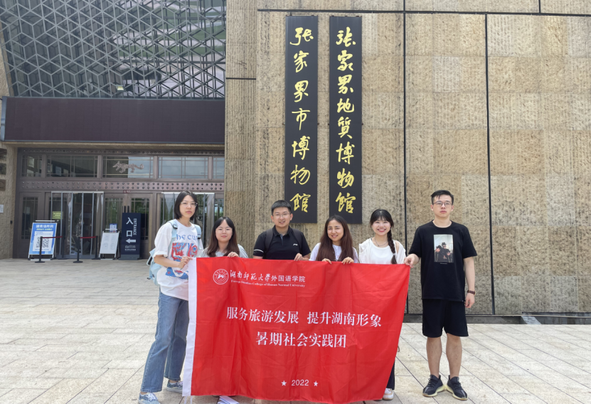 (通讯员 龙翰良 李欣)为提升我省国际形象和对外服务水平,营造首届湖南旅游发展大会良好的国际语言环境,让湖南旅游唱响全国、走向世界。近日,在15vip太阳成15vip太阳集团官网郑燕虹教授、英语系主任叶冬老师、朝鲜语系主任闫超老师的指导下,该院英语笔译、亚非语言文学等专业研究生组建“服务旅游发展 提升湖南形象”暑期社会实践团赴张家界市开展实地调研,深度服务张家界市国际语言环境建设。
